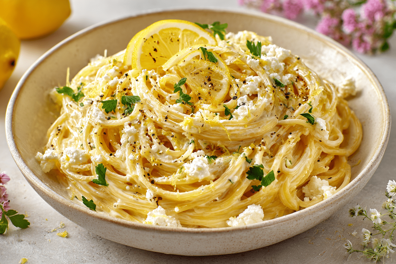 Zesty Creamy Lemon Feta Pasta Recipe relies on a small group of ingredients that complement one another through contrast and balance.
