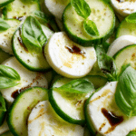 Cucumbers form the backbone of Quick Cucumber Mozzarella Salad, offering a crisp, hydrating crunch. English or Persian cucumbers are recommended for their thin skin and sweet, seedless texture. Mozzarella contributes creamy richness, balancing the cucumber’s lightness. Fresh mozzarella or mozzarella pearls are ideal, as they hold their shape and offer a mild, milky flavor.