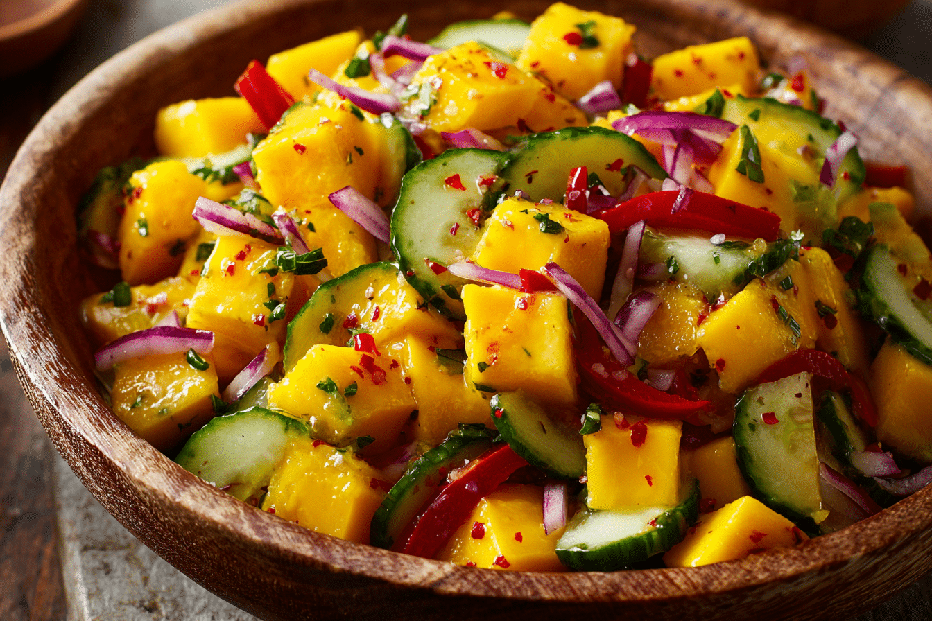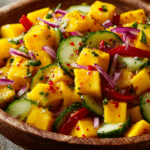 Mango Salad is a refreshing combination of ripe mango, crisp vegetables, fresh herbs, and a tangy lime dressing. Sweet, savory, and lightly zesty, it works beautifully as a side dish or light main course.
