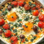 Mediterranean Baked Feta Eggs are a vibrant, comforting breakfast or brunch dish that combines creamy feta, luscious tomatoes, and perfectly baked eggs. Bursting with bold Mediterranean flavors, this dish pairs the tangy richness of feta with sweet, roasted cherry tomatoes, aromatic garlic, and fresh herbs. It’s visually stunning and effortlessly flavorful, perfect for a weekend breakfast or a special brunch gathering.