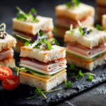 Mini Sandwiches often appear at gatherings where small portions encourage variety. Afternoon tea services commonly include cucumber sandwiches, egg salad bites, and smoked salmon versions arranged neatly on tiered trays.