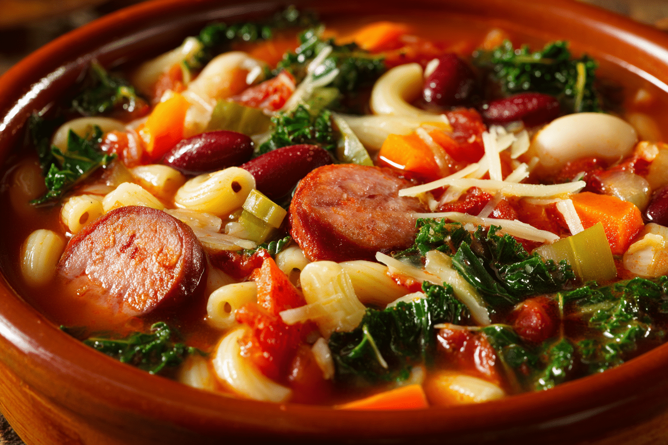 What makes this soup so memorable is its deep, savory broth and chunky texture. Each bite is layered with smoky, meaty flavor balanced by soft beans, sweet vegetables, and chewy pasta. It’s the kind of soup that simmers low and slow, filling the kitchen with an irresistible aroma.