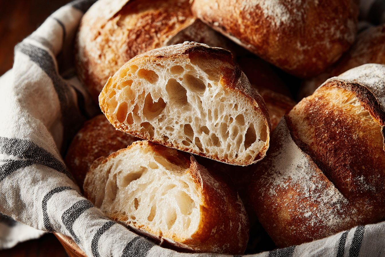 This no-knead ciabatta is light, airy, and crusty — perfect for sandwiches, soups, or toasting. No mixer or kneading required.