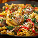 If you’re looking for a quick, flavorful dinner that feels indulgent yet comes together effortlessly, Creamy Cajun Sausage Pasta is it. This bold and comforting one-pot pasta is a weeknight hero — smoky sausage, tender pasta, and a velvety Cajun-spiced cream sauce all simmered together for maximum flavor and minimal cleanup.