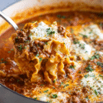 This hearty soup is comforting, family-friendly, and perfect for chilly nights when you need something satisfying without spending hours in the kitchen. With the same bold Italian flavor and gooey cheese pull you’d get from baked lasagna, this soup is pure comfort in a bowl.
