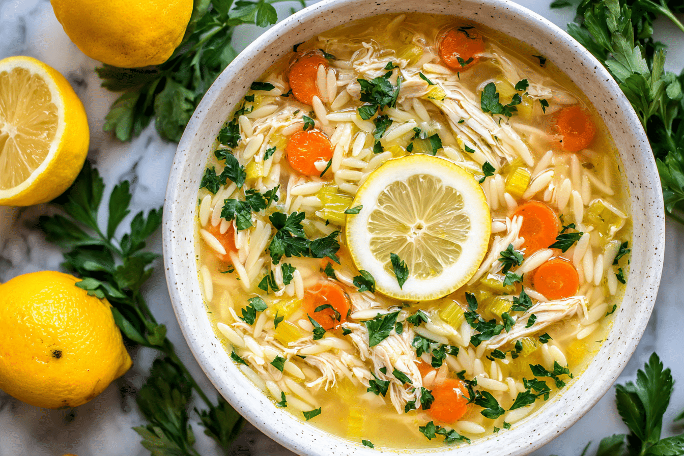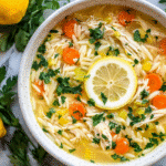 A fresh and comforting chicken soup made with orzo pasta, lemon juice, and herbs — perfect for a light yet satisfying meal.