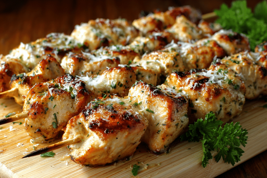 Grilled Ranch Garlic Parmesan Chicken Skewers bring together smoky char, creamy ranch flavor, sharp Parmesan, and fragrant garlic in every juicy bite. Cooked over open flames or a hot grill …