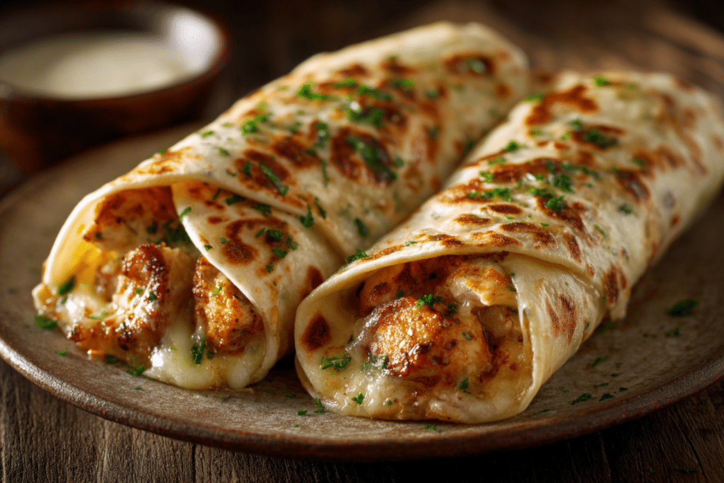 Cheesy Garlic Chicken Wraps are the kind of meal that turns a simple dinner into something deeply satisfying. Tender seasoned chicken, melted cheese, and a rich garlic sauce are tucked …