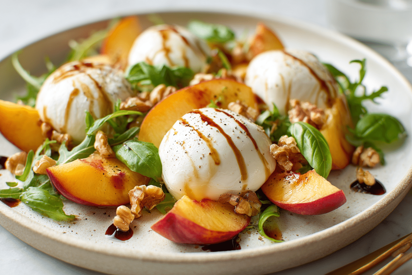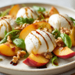 Whether served as a starter or a light main course, Peach Burrata Salad with Balsamic Drizzle – Summer’s Most Elegant Salad delivers balance and visual appeal. It celebrates seasonal ingredients at their peak and turns a handful of simple components into a striking presentation.