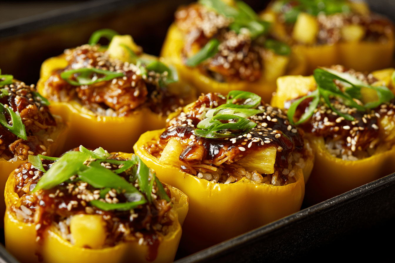 Teriyaki Pineapple Chicken and Rice Stuffed Peppers bring together tender chicken, sweet pineapple, and fluffy rice inside vibrant roasted bell peppers. The balance of sweet and savory flavors makes this dish satisfying yet bright, with each bite offering juicy chicken coated in glossy teriyaki sauce.