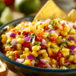 Poolside Corn Salsa is a bright, refreshing dish that fits perfectly into warm-weather gatherings. The combination of sweet corn, crisp vegetables, and citrusy dressing creates a light snack that feels both satisfying and refreshing on hot days. Its colorful appearance also makes it a natural centerpiece on a summer snack table.