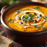 Autumn-spiced roasted pumpkin soup is a celebration of the season in every spoonful. Deeply flavorful and smooth, this cozy soup blends roasted pumpkin with warming spices like cinnamon, nutmeg, and ginger, then swirls in creamy coconut milk or cream for a silky finish. It’s earthy, naturally sweet, slightly smoky from roasting, and richly spiced — the ultimate fall comfort in a bowl.