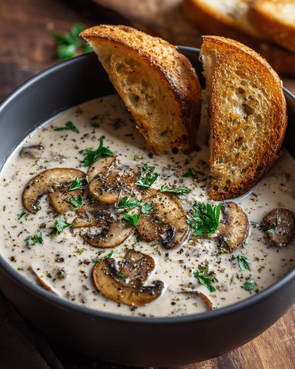 A cozy, creamy mushroom soup packed with earthy flavor and silky texture. Perfect for cool days, elegant dinners, or comforting weeknight meals.