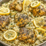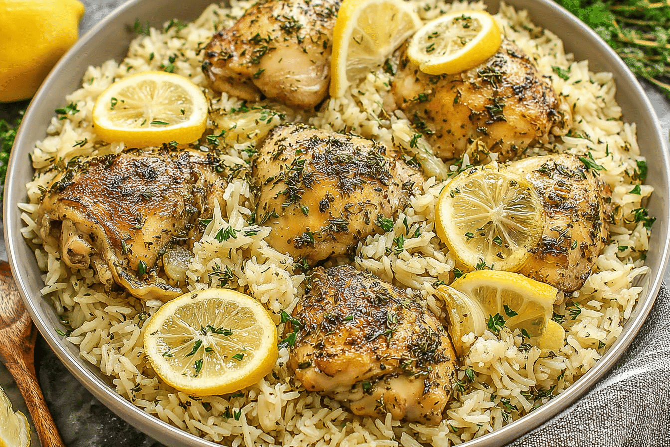 The result is a balanced one-pot meal with protein, grains, and aromatic seasoning. Lemon adds brightness, herbs bring earthy warmth, and chicken provides a hearty base. Each spoonful carries a soft, savory character with a gentle citrus lift.