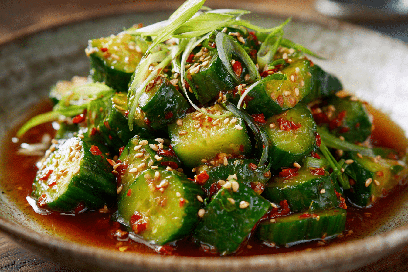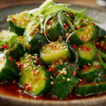 Spicy Asian cucumber salad is a refreshing dish that delivers bold heat and bright flavor in every bite. Crisp cucumbers soak up a savory, tangy dressing infused with garlic, chili, and sesame, creating a balance that feels both cooling and lively at the same time.