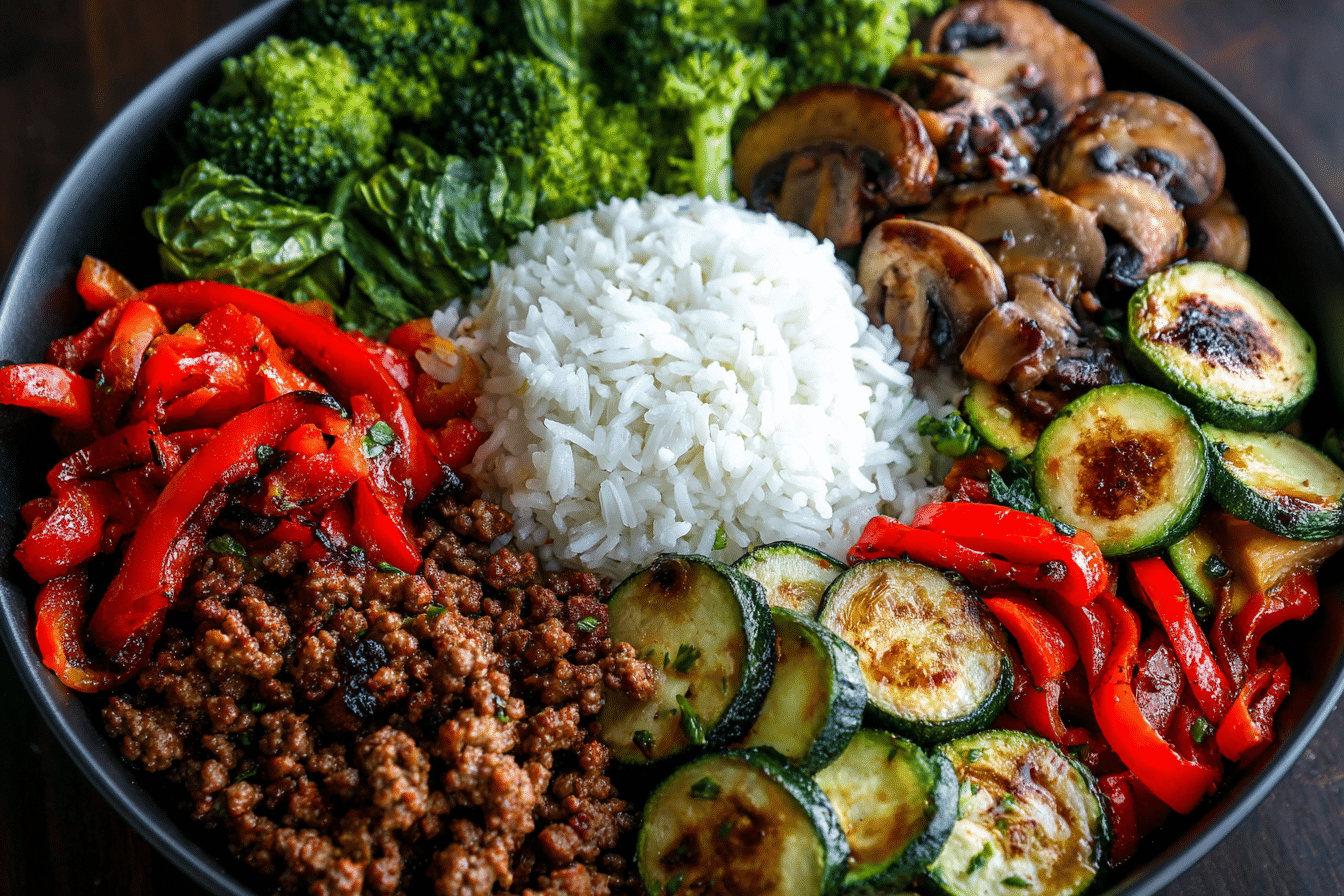Looking for a satisfying dinner that’s bold, balanced, and ready in under 30 minutes? This Spicy Ground Beef Stir-Fry Bowl with Garlic Veggies & Steamy Rice checks every box. It’s a savory, slightly spicy, umami-rich stir-fry made with seasoned ground beef, fresh sautéed vegetables, and a flavorful homemade sauce — all served over fluffy rice.