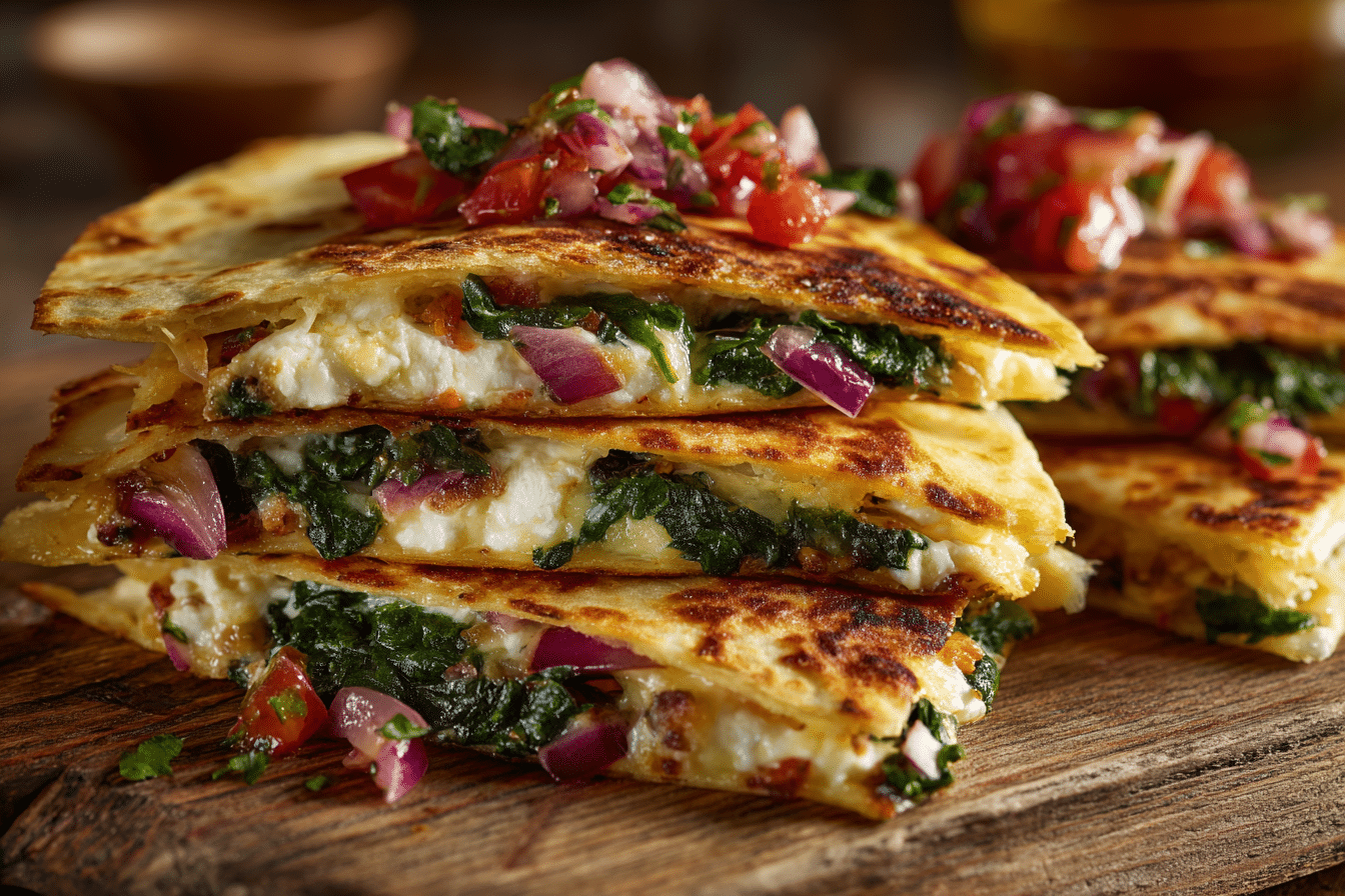 Mediterranean Quesadillas with Spinach, Feta, Mozzarella, and Red Onion: Flavorful Lunch Ideas bring together the comfort of melted cheese and crisp tortillas with bright, herb-forward ingredients inspired by Mediterranean cooking. This recipe transforms a simple quesadilla into something layered, satisfying, and vibrant.