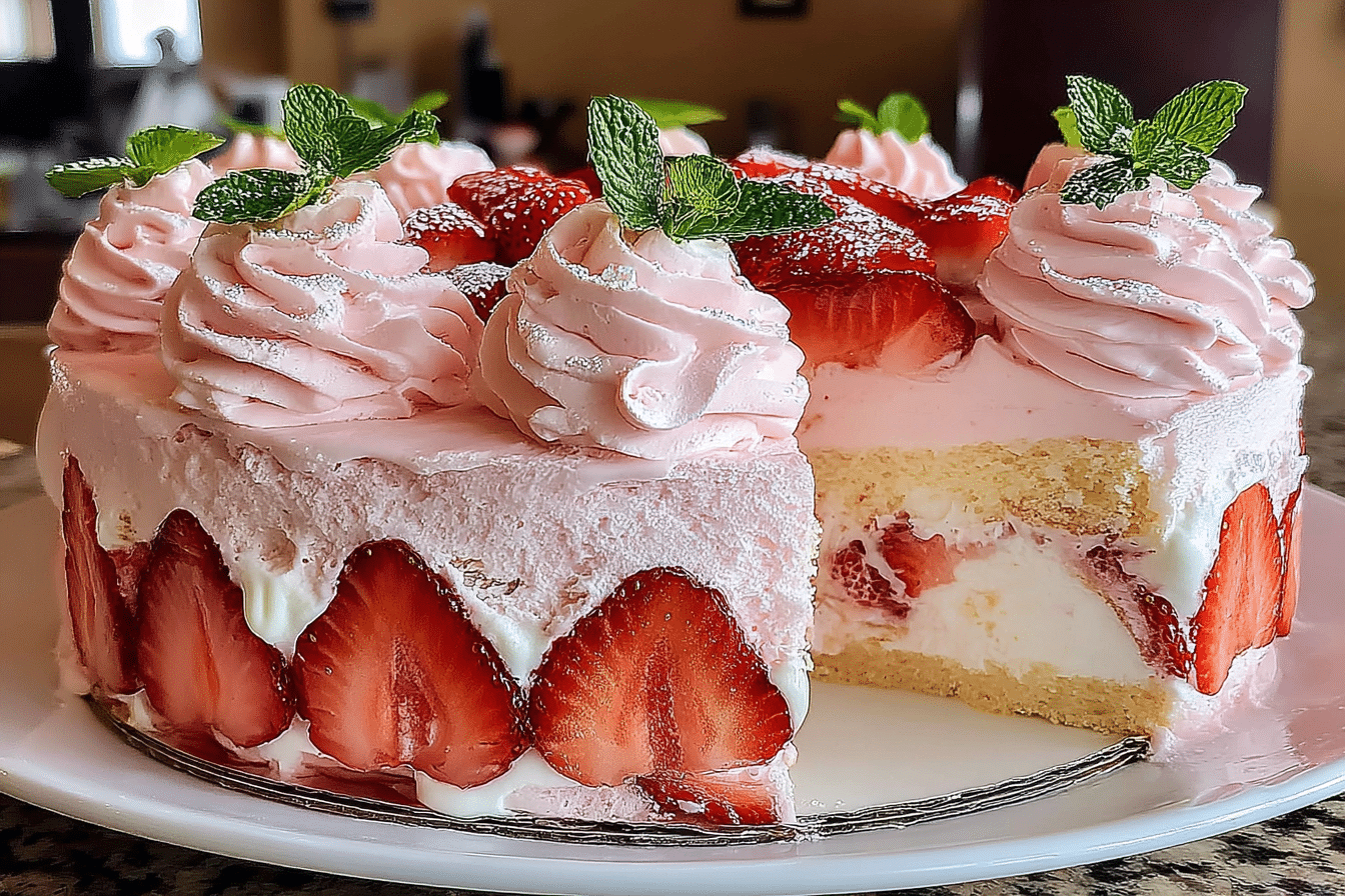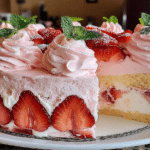 Cutest Strawberry Cream Cake is a soft, airy dessert layered with fluffy whipped cream and fresh strawberries, finished with a charming, delicate design that makes it as beautiful as it is delicious. This cake is often chosen for celebrations where presentation matters just as much as flavor.