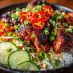 These Sweet Chili Chicken Rice Bowls with Chicken Thighs are everything you crave in a cozy, flavor-packed meal. Tender, juicy chicken thighs are glazed in a sticky sweet chili sauce, layered over warm rice, and paired with crisp veggies for the perfect weeknight bowl.