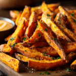 Crispy oven baked sweet potato fries are endlessly versatile. Serve them with turkey burgers, black bean wraps, or grilled chicken sandwiches for a full meal. They’re also perfect for casual snacking with friends or as a healthier game-day side.