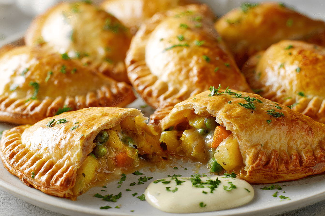 This recipe highlights humble ingredients like potatoes, carrots, onions, and cabbage, all tucked inside buttery dough. As they bake, the vegetables soften and mingle, creating a savory filling that is deeply satisfying without relying on meat.