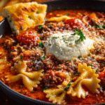 Inspired by classic Italian-American lasagna, this quick soup captures all the essentials—meaty sauce, creamy cheese, and pasta—transformed into a flavorful one-bowl meal that feels like comfort food at its finest.